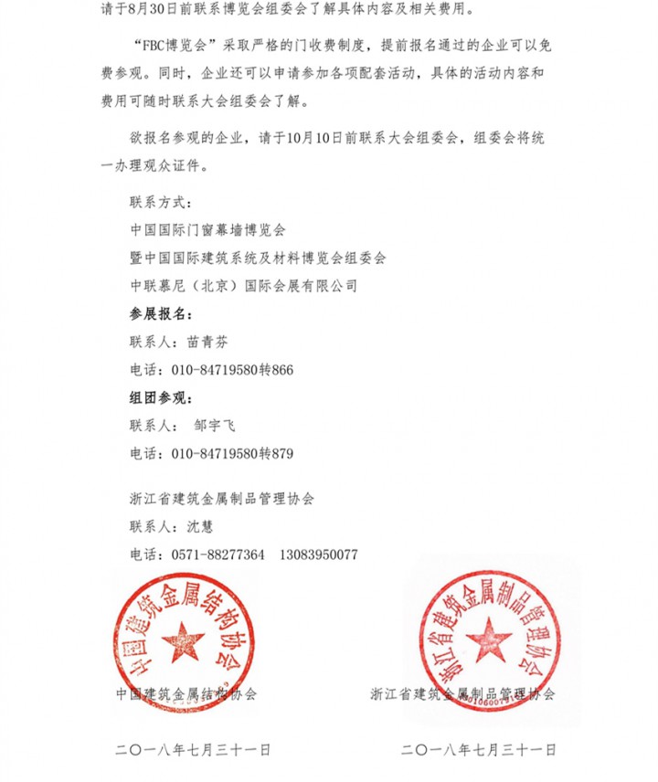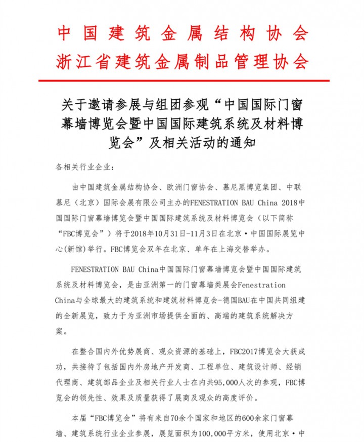 关于邀请参展与组团参观“中国国际门窗幕墙博览会暨中国国际建筑系统及材料博览会”及相关活动的通知