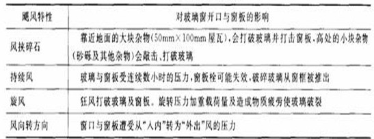 2.3.4台风对玻璃窗口与窗板开口的影响情况如表3—8所示。