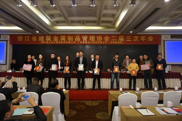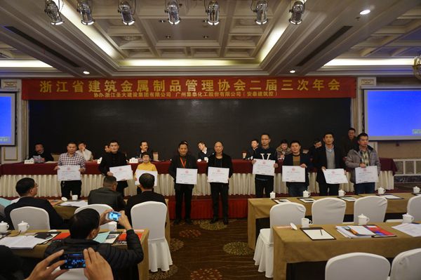 杭城的十二月,本应是寒意来袭的日子,但却未曾感到寒冷。二零一五年十二月二十七日,浙江省建筑金属制品管理协会第二届理事会三次年会在杭州萧山宾馆召开了。此次年会是协会更名换届后的第三次年会,各会员单位予以高度重视,亲临会议共同探索建筑门窗幕墙行业的发展方向和企业的转型发展方向。