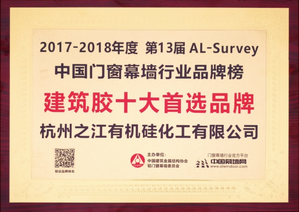 展会期间,中国建筑金属结构协会主办的第13届AL-Survey2017-2018中国门窗幕墙行业大型读者调查暨“我最喜爱品牌”评选结果正式揭晓,建筑密封胶行业各大品牌悉数亮相。“杭州之江”凭借其先进的生产设备、高素质的科研团队、完善的服务体系、超高的知名度和美誉度,最终赢得广大终端客户、行业专家、设计院、顾问公司和专业媒体的高度认可,在中国门窗幕墙行业大型读者调查暨“我最喜爱品牌”评选活动中,成功卫冕“建筑胶十大品牌”!并实现连续13年蝉联“用户首选”