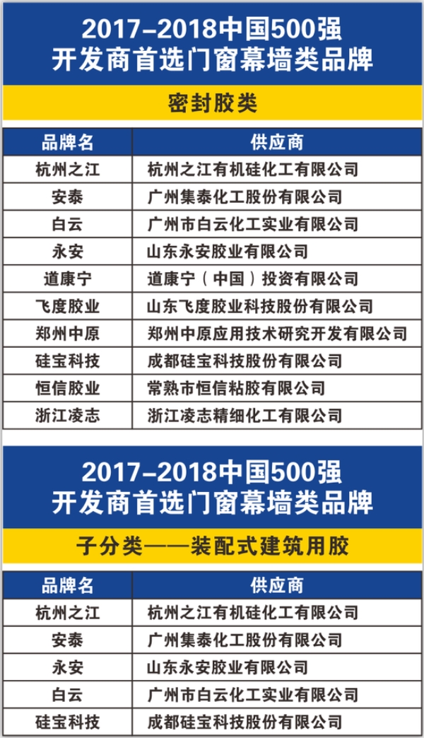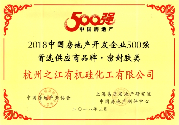 大会还揭晓了2018中国房地产开发企业500强首选品牌榜单,此次500强首选供应商评选活动从2017年12月8日开始,历经候选人申报、行业评委评价、公众网上投票等环节,在参与角逐的企业家和工程经理人中遴选出了最具代表性的200位候选人名单,并最终评选出房地产首选供应商,为房地产百强企业招采工作提供极有价值的参考,因此该奖项也被美誉为房地产供应商的“年度奥斯卡”奖。杭州之江公司通过坚持以市场为导向,以创新求发展来打造品牌,在产品和服务上进无止境,在观念、机制、管理和技术上不断创新,获得了专家、客户和评委的一致认可,第四次荣膺500强房地产首选品牌密封胶类第一名,以及评选的子分类榜单中装配式建筑用胶首选供应商的第一名。